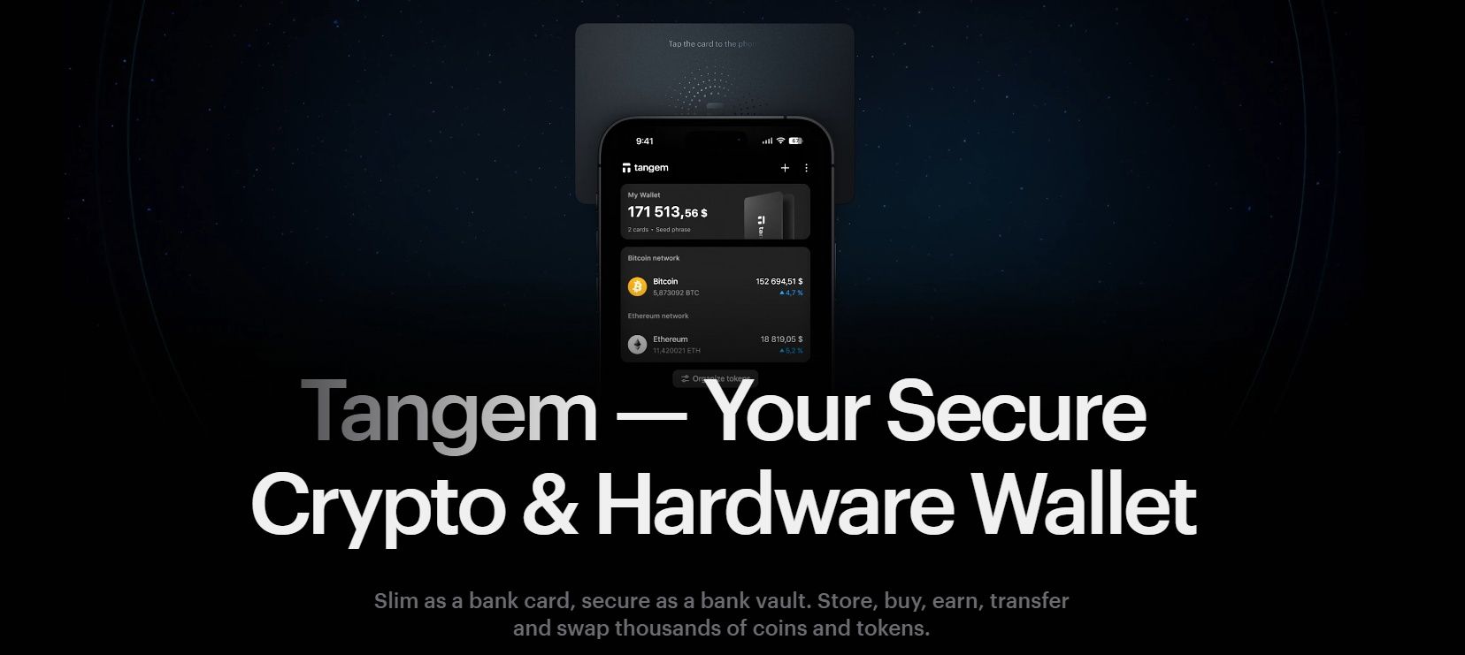 Tangem is a hardware-wallet maker founded in 2017 and headquartered in Zug, Switzerland. The product sits between “traditional USB devices” like Ledger and Trezor and “card” form factors such as CoolWallet, aiming to make self-custody feel as simple as tapping a bank card. Tangem says it has produced over 6 million cards, signalling strong demand for seed-optional, phone-first cold storage.