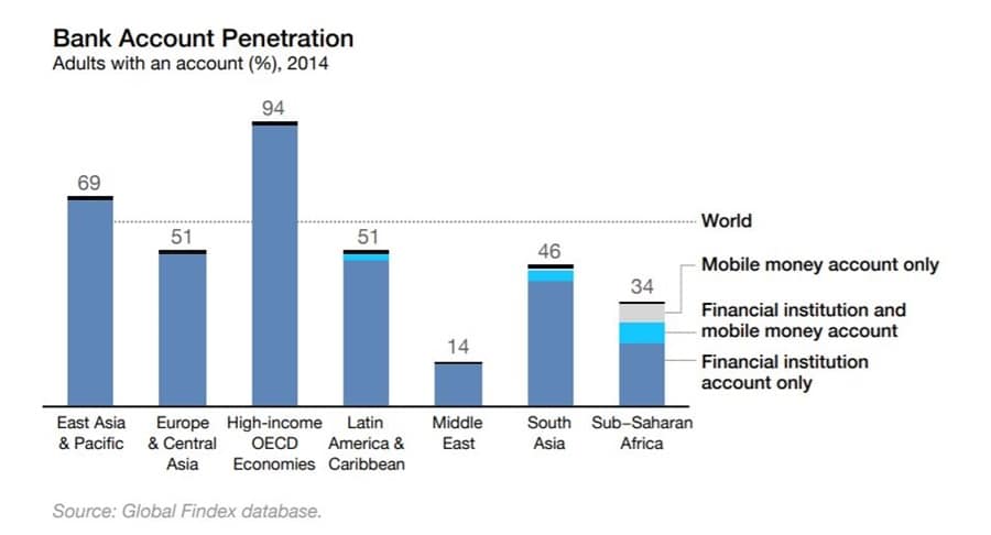 One of the most successful stories when it comes to mobile money is that of Safaricom in Kenya. According to the World Bank roughly 90% of the adult population of Kenya has a “bank account.” That’s the same level as high-income OECD economies.