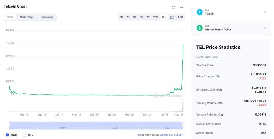 Telcoin is a project that’s been in the works since 2017, but has only recently captured the attention of traders, with its TEL token now up more than 80,000% off is March 2020 lows!