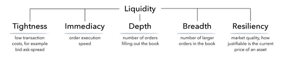 It’s clear to anyone who is familiar with the cryptocurrency markets that all of the coins and tokens, even Bitcoin and Ethereum, are seriously lacking in liquidity. In an effort to better understand how liquid markets function, economists Tonny Lybek and Abdourahmane Sarr sub-divided liquidity into 5 factors: