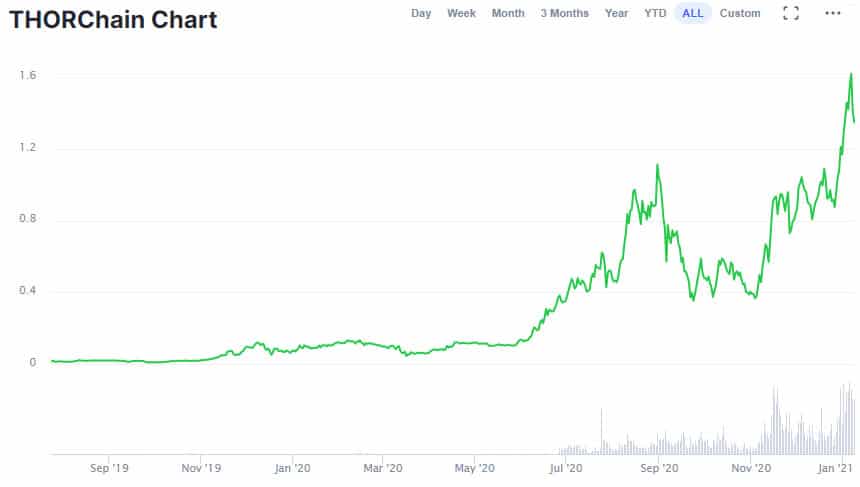 With a market capitalization of $240 million RUNE tokens are currently the 82nd largest cryptocurrency by market cap, and they have been rapidly moving up the ladder after adding more than 100% in December 2020.
