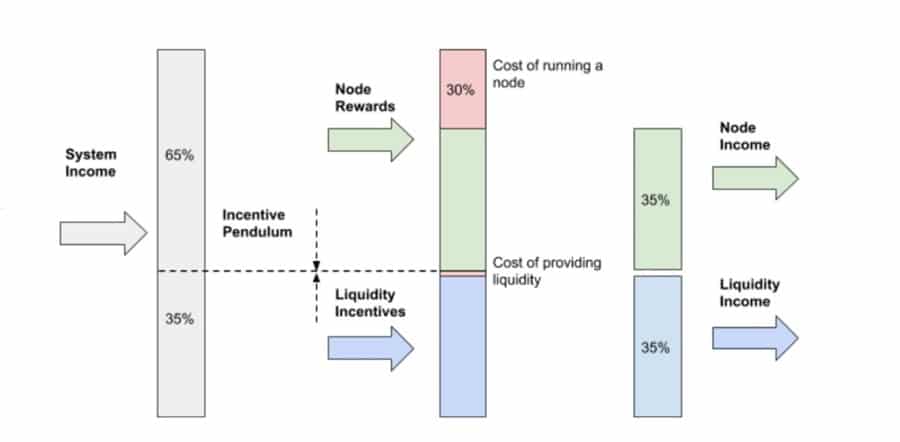 Nodes can earn 2/3 of the system rewards. Image via Rebase.foundation Each node is run by a node administrator and they receive bond rewards for helping to maintain the network. The total they earn is two-thirds of all system income. Nodes are created every three days and have to compete with one another using bonded capital. In order to ensure the network remains fresh the older nodes are occasionally churned out of the system and replaced. Nodes benefit from being anonymous with plausible deniability on all transactions.