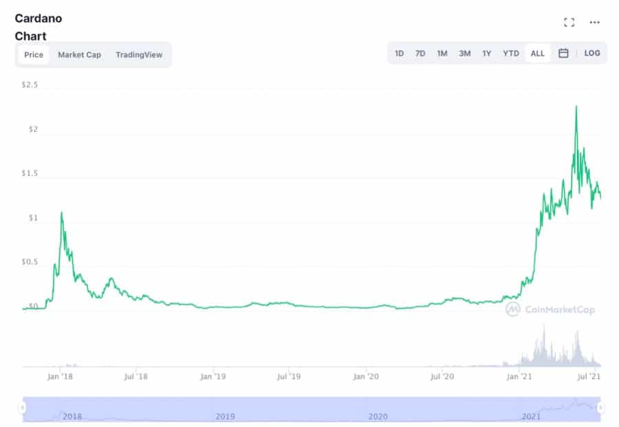 A Visual Of The Huge Spikes Experienced By Cardano’s ADA Token - Image via CoinMarketCap In order to fund its development, Cardano raised $62.2 million for its Initial Coin Offering. The pre-launch token sale of ADA ran from September 2015 to January 2017 and was undertaken over 4 different tranches. During the sale the average price paid for 1 ADA was $0.0024.