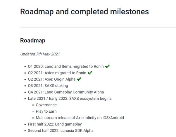 Axie Infinity Roadmap via Axie Infinity whitepaper. So there are plenty of exciting things on the way for Lunacia and its resident Axies.