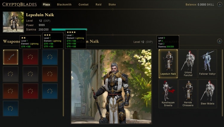 CryptoBlades Character Screen Image via Gadgetpilipinas.net Each weapon is assigned an element such as fire, earth, water, or lightning, each with its own strengths and weaknesses. Once a character has been chosen, players are ready to battle and this is where they earn SKILL tokens by winning these battles.