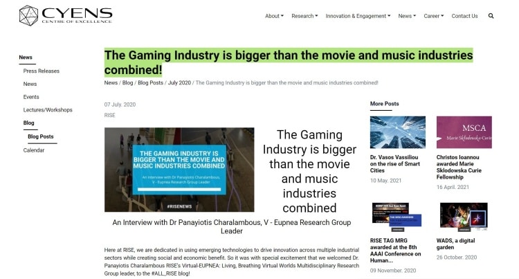 Cyens Report Highlighting That the Gaming Industry has Surpassed Both the Music and Movie Industry Combined Image via Cyens.org While it may not be as “in your face” as sports, movies and music, according to a recent report by Accenture, the gaming industry is currently worth a whopping $300 billion dollars, pulling in $90 billion worth of revenue in 2020 alone, and is forecast to be earning a face-melting $256 billion in revenue per year by 2025.
