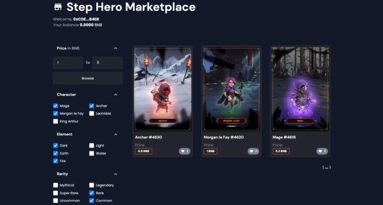 Holders of Hero tokens can stake their balance to earn in-game points, or stake Hero-BNB LP to earn FLIP tokens on PancakeSwap, meaning that there is more than one utility for holders of Hero tokens providing players with a choice of how they want to use their tokens. Players can use BNB or redeem points and FLIP for NFT’s which can be traded on the in-game marketplace. The marketplace is a cross-chain NFT platform where users can create, sell, and buy NFT’s, and even includes features such as auctions and affiliate programs.