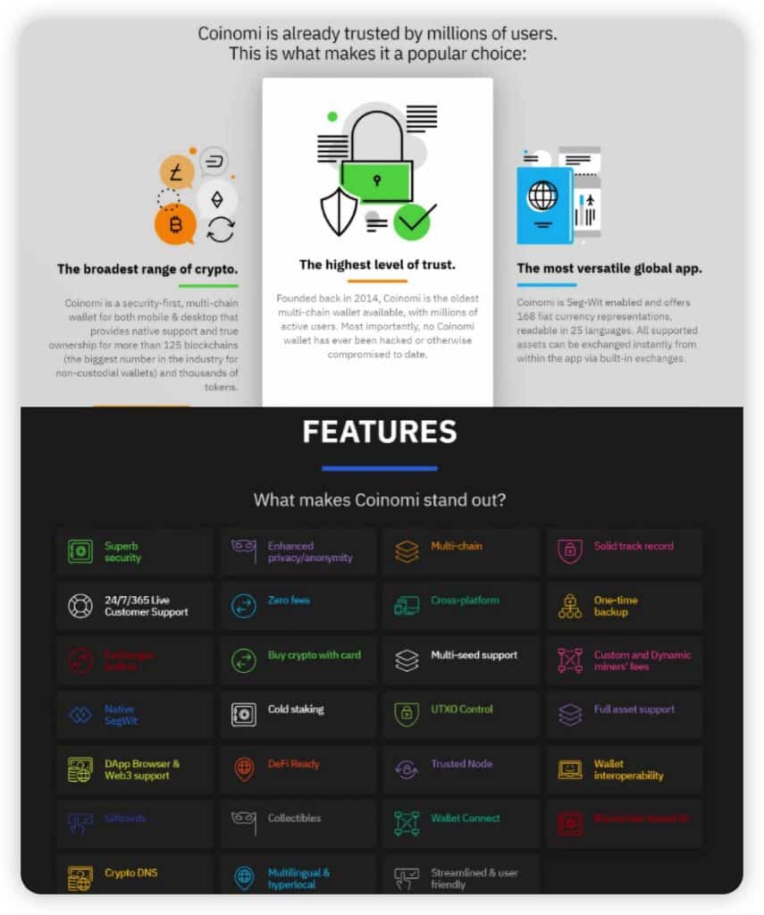 Some of Coinomi’s Main Features Image via CoinomiZengo Wallet- Most Secure Mobile Wallet