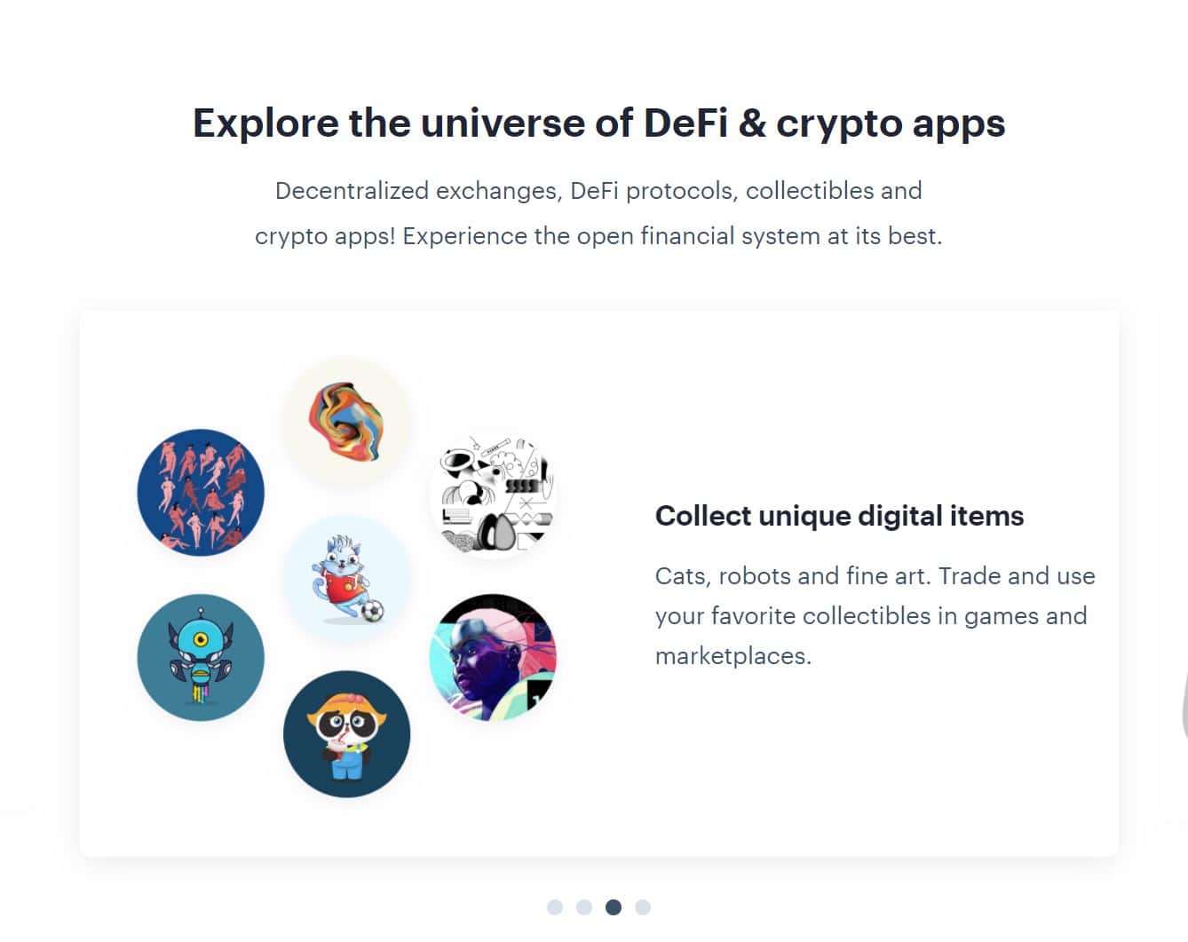 Trust Wallet comes equipped with a fully functioning Web3 DApp browser built into the app, unlocking the utility of DeFi as the wallet can be used to interact with decentralized applications such as Uniswap, Aave, Compound Finance, PancakeSwap, basically any DApp that exists on either the Ethereum or Binance Smart Chain networks. Trust Wallet also has great NFT and digital collectable support supporting ERC721 and ERC1155 tokens.