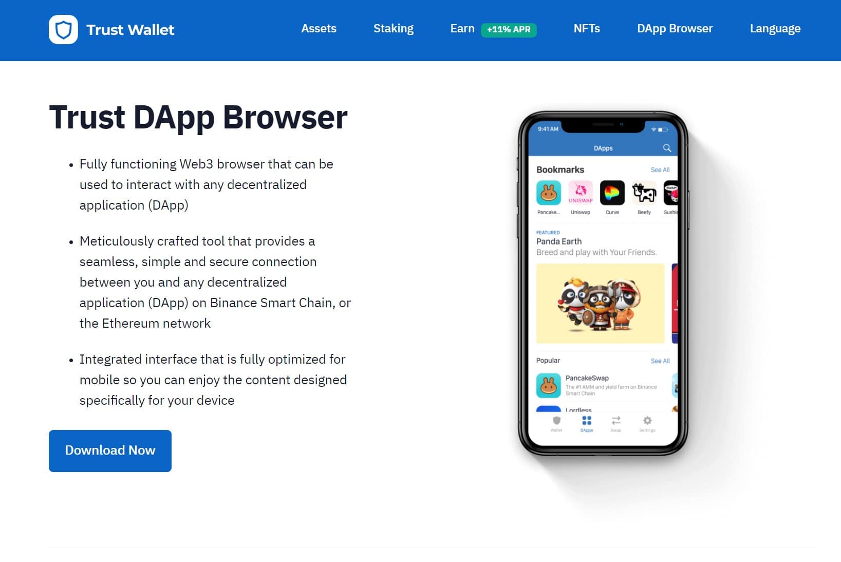 Trust Wallet DApp Browser Allowing Connection to the world of DeFi Image via Trust WalletTrust Wallet is fully open-sourced and users can benefit from staking 11 assets directly within the app for popular assets. Users can purchase crypto directly within the wallet and there is a built-in crypto exchange in addition to being able to access DEXs where users can instantly and seamlessly swap coins and tokens with no KYC or identify verification needed, with the security of your funds never having to leave the wallet.