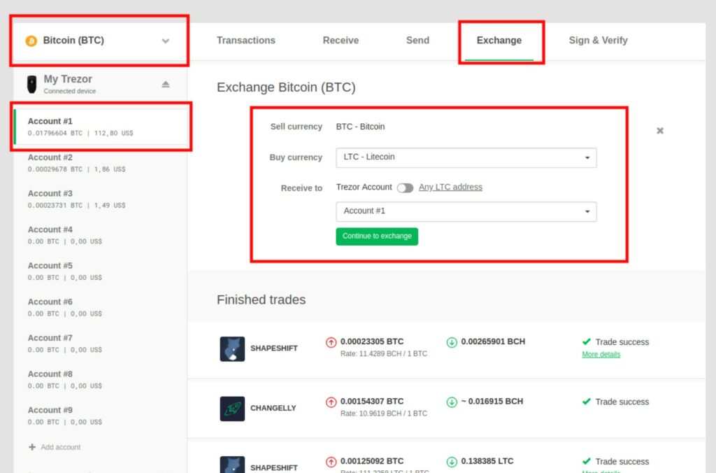 A Look at Exchanging Crypto Within Trezor Suite. Image via TrezorTrezor Model T Price