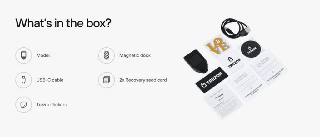 Upon purchasing a Trezor, users will find the following items in the box: