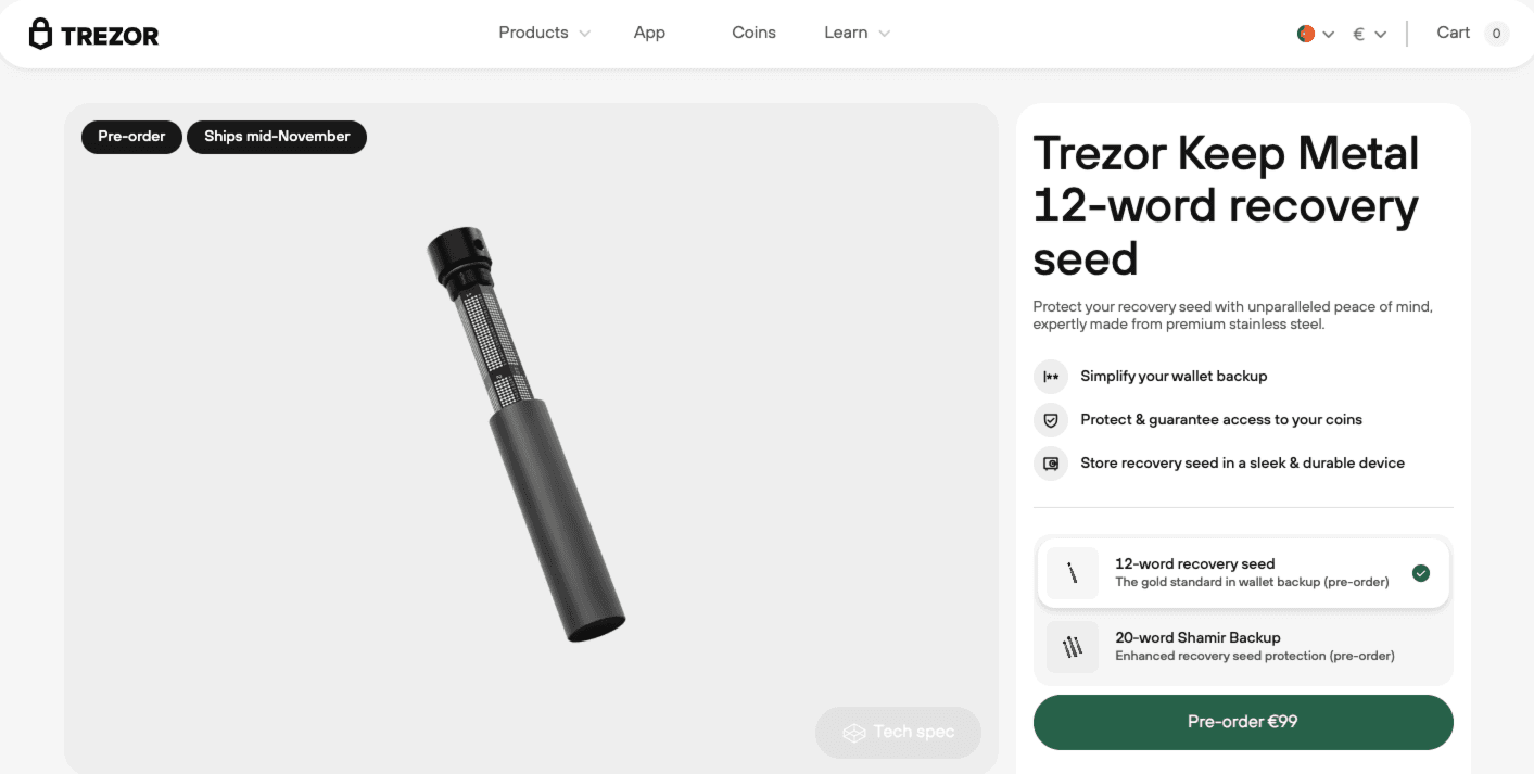 Alongside the release of the Safe 3, Trezor also launched Keep Metal Shamir Backup and Keep Metal 12-word recovery seed. These two products are designed to store information in a safe and secure form.