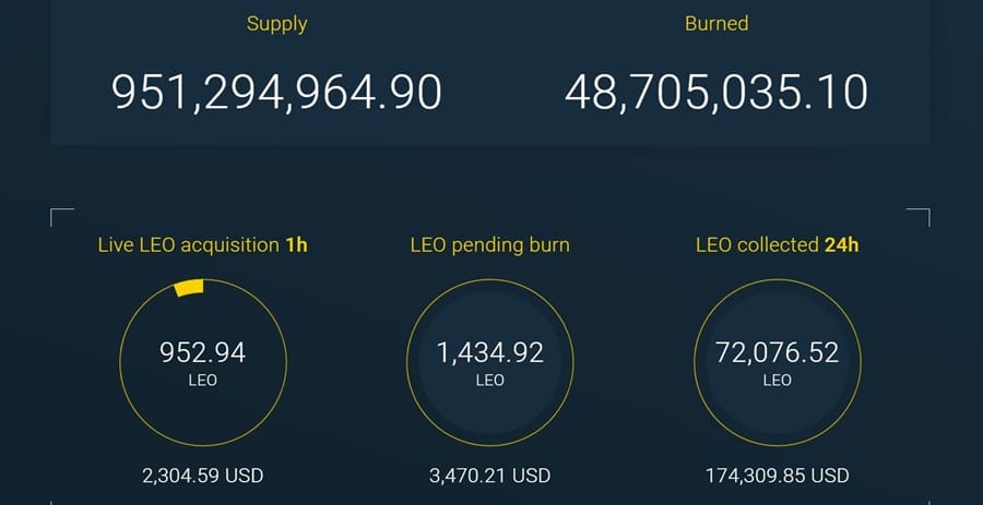 There is no additional emission mechanism for the LEO token, so no mining and no staking. All of the tokens have already been emitted and the total supply is capped at 1 billion tokens. In addition, the circulating supply is steadily declining as tokens are regularly burned. That means the only way to acquire LEO tokens is by buying them on exchanges.
