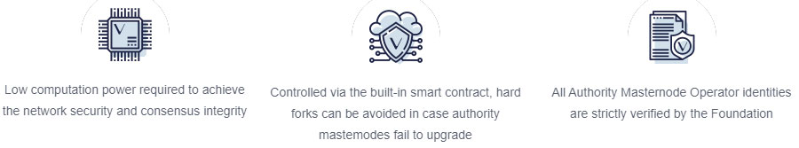VeChain's blockchain runs on a Proof of Authority (PoA) consensus model that requires nodes by authorized before they can participate in blockchain consensus. Once a node becomes authorized it joins the pool of other authorized nodes and each has an equal chance of publishing new blocks and receiving rewards. Under this system, the rich nodes have no advantages, and there is no requirement for nodes to compete with one another and use vast amounts of resources.