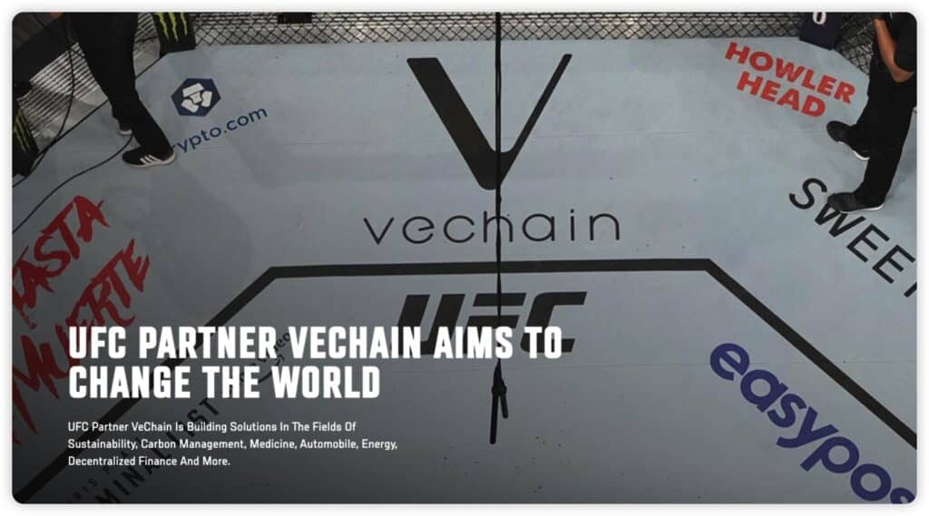 Image via UFC.com More recently, Vechain has been active in adding hospitals and tracking infection risk management in connection with the COVID-19 pandemic.