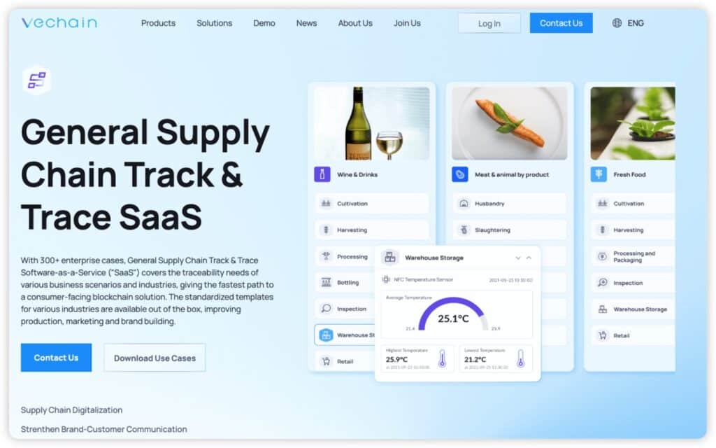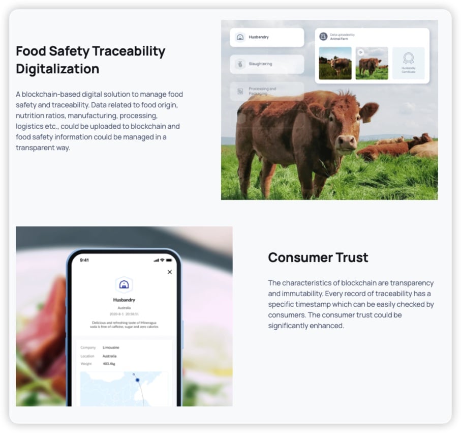 VeChain's Food Safety Track and Trace service comes readily deployable and includes product provenance and quality certificates. Not only does this help track the journey of the consumables, but allows for consumer interaction in ways that were not before possible, allowing food and beverage companies to communicate and build brand awareness in a trustworthy manner.