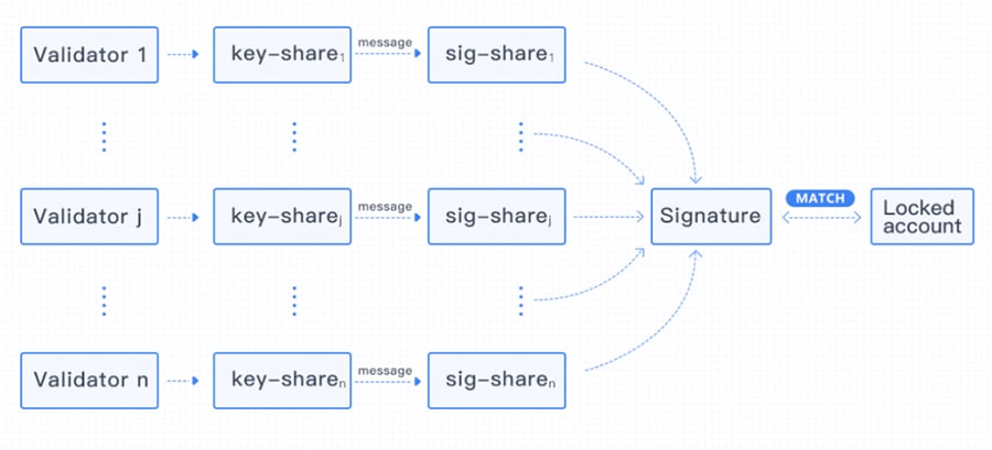 In order to secure funds and keys when multiple parties are involved in a transaction, Wanchain uses a Locked Account Generation Scheme. In this scheme, keys are broken up into shares and distributed to different participants.