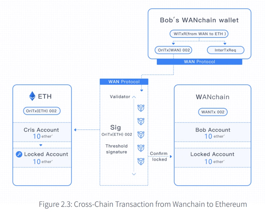 Lastly, Wanchain’s validator node sends the legal transaction to the original chain to complete the transfer-back process.