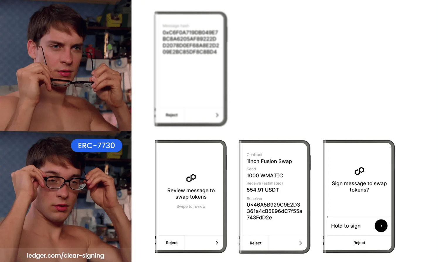 Without structured metadata, transactions remain unreadable, leaving users to rely on blind signing—a major security risk. To address this, Ledger has introduced ERC-7730, an open-source metadata standard that allows DApps to provide clear, structured transaction details that wallets can display in a human-readable format.