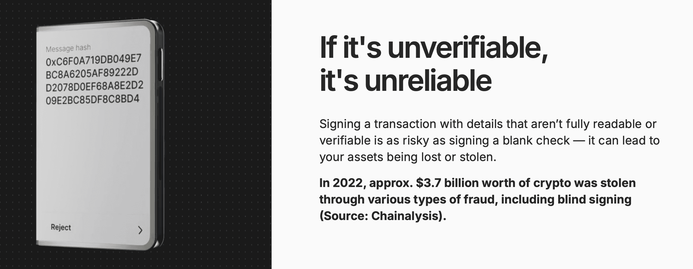 If there’s one principle that defines crypto security, it’s don’t trust, verify. But what happens when verification isn’t possible? This is the issue of blind signing—a long-standing vulnerability in Web3 that has resulted in billions of dollars in stolen assets. Despite advancements in DeFi, NFTs, and smart contracts, many users still approve transactions without fully understanding what they’re signing.
