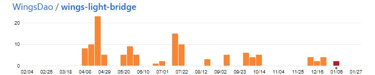 I took a look into the Wings DAO GitHub and pulled the commits of the most active repository. So far most of the work that has been done recently is on the Wings Light Bridge. This is the feature that will allow developers to integrate their projects onto the Wings Platform.