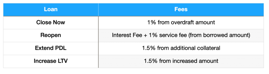 - Reopen feature - extend the loan without repaying it by activating this function. Fees apply every time the loan is extended.