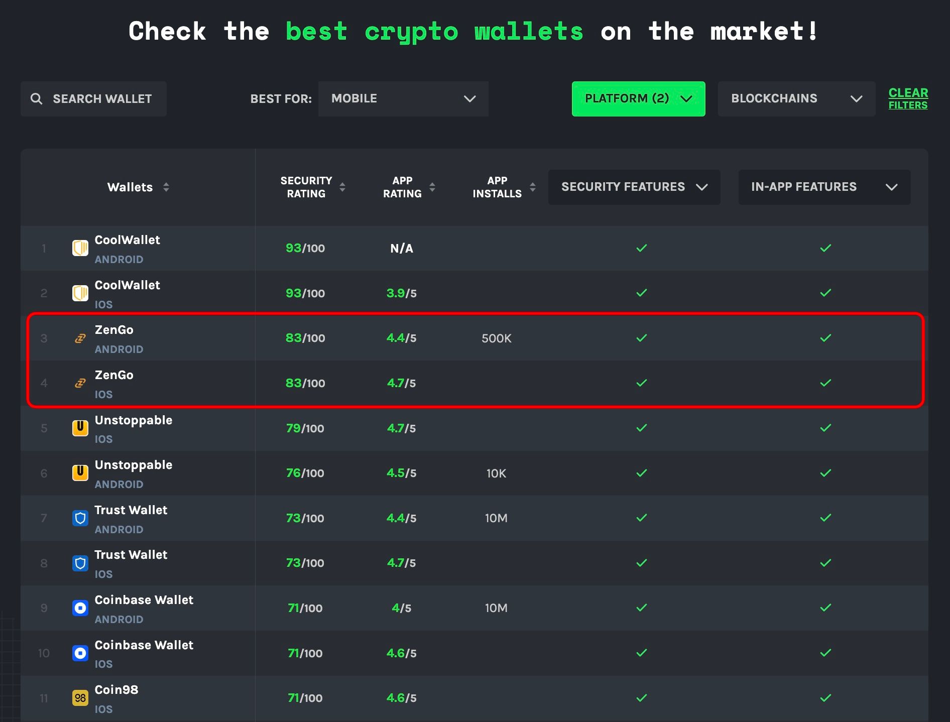 Furthermore, independent security research firm Certified has listed Zengo wallet as a top 3 most secure mobile wallet.