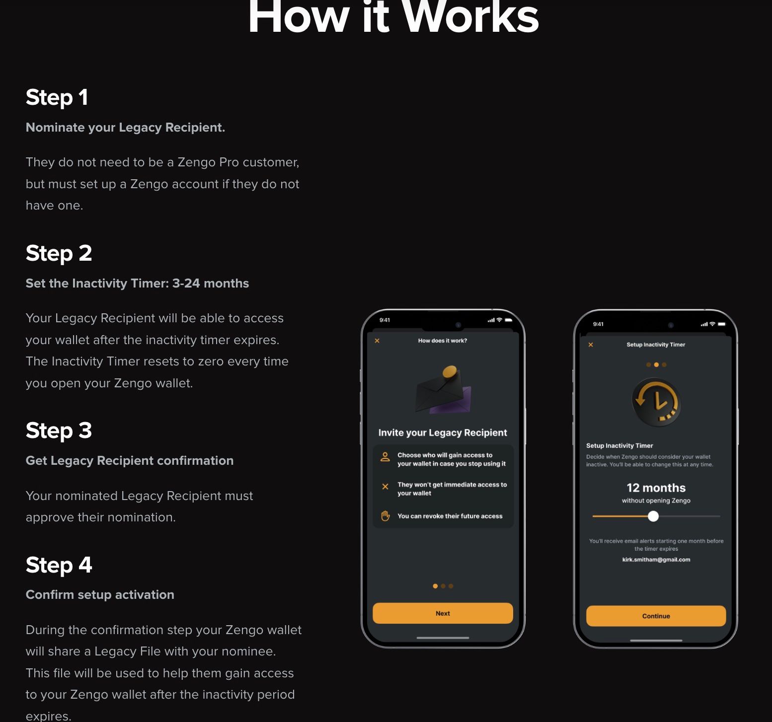 The team at Zengo thought of that as well and implemented redundancies into their Guaranteed Recovery promise. With this solution, even if Zengo fails and the company ceases operations, you’ll still be able to access your crypto easily.