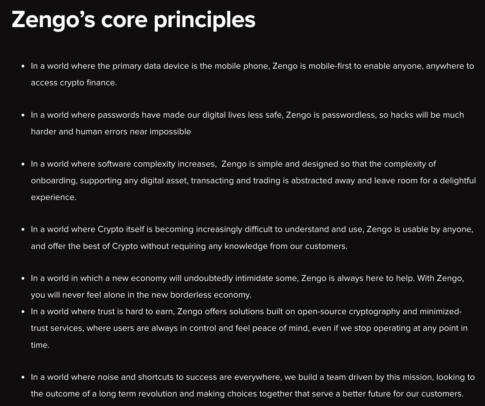 The team is focused on creating a wallet that makes cryptocurrency storage and usage as safe and easy as possible. Here is a look at Zengo’s core principles and what makes them tick: