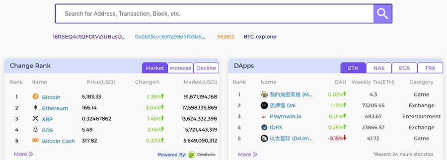 Block Explorer and Crypto / Dapp Market overviewIn addition to a blockchain explorer for Bitcoin, you’ll find blockchain explorers for 70 additional altcoins, with new coins added all the time. There’s also a powerful dApp explorer. Tokenview truly is one of the most powerful and feature-rich blockchain explorers available.