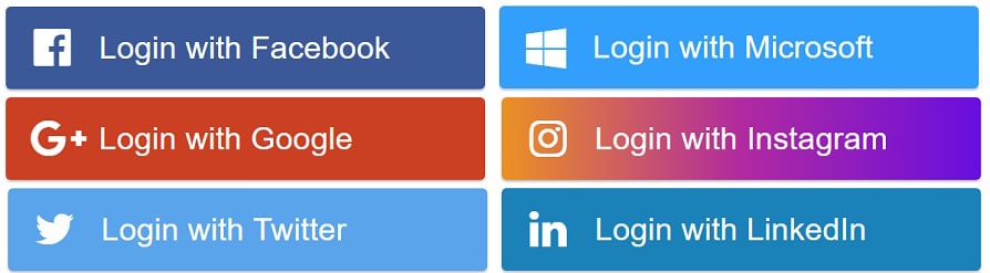 Numerous Social Account Login Options. Source: NPMThis option is easier to implement, but there’s a risk for the user. If something happens to his main account (for example, Facebook blocks the account for no reason), he’ll also lose the access to his information on your site.