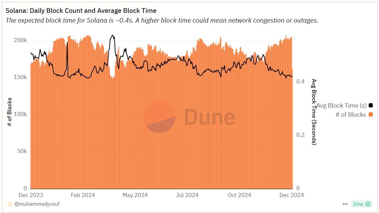 Solana Block Time Hovers a Little Over 400ms | Image via DuneKey Takeaway: Ethereum’s shift to PoS has sped up finality considerably, but it’s still measured in seconds to minutes on L1. Solana’s ~400ms finality is among the fastest in the industry, appealing to latency-sensitive DApps like high-frequency DEXs or blockchain gaming.