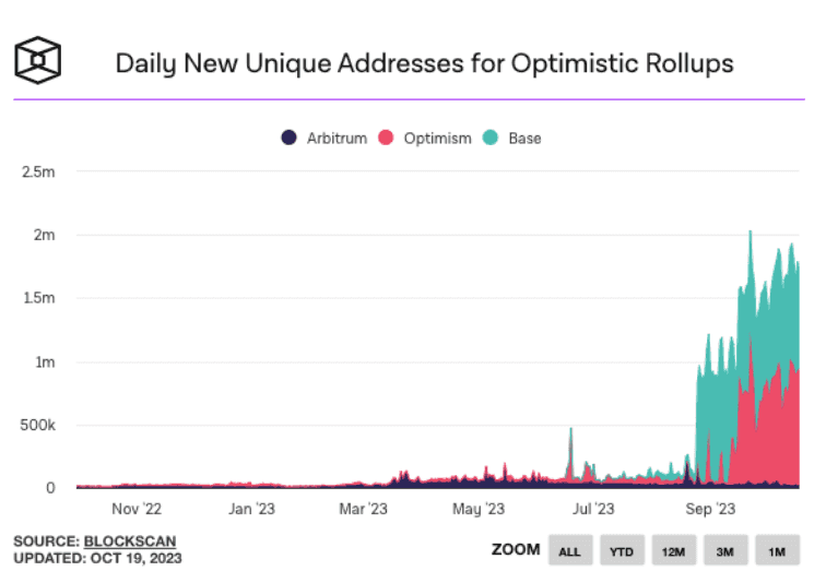 Concerning major L2 networks, Base is still in the lead with daily new unique addresses.