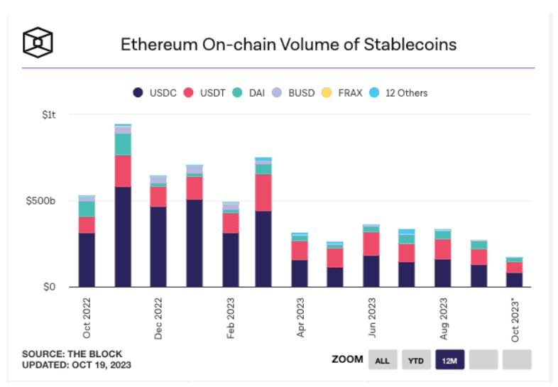 Stablecoin volumes have hit their lowest in over a year on Ethereum. This signals that capital is flowing to other networks such as Bitcoin as investors seek to hedge against risk. Another important point is that capital is leaving crypto entirely and being invested in other non-crypto asset classes.