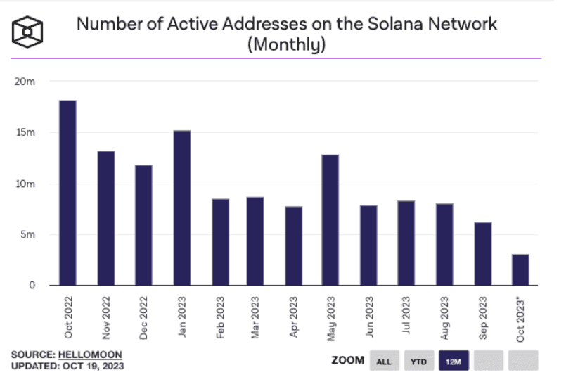 Despite the rise in NFT activity on Solana and its positive price action recently, the number of addresses continues to decline.