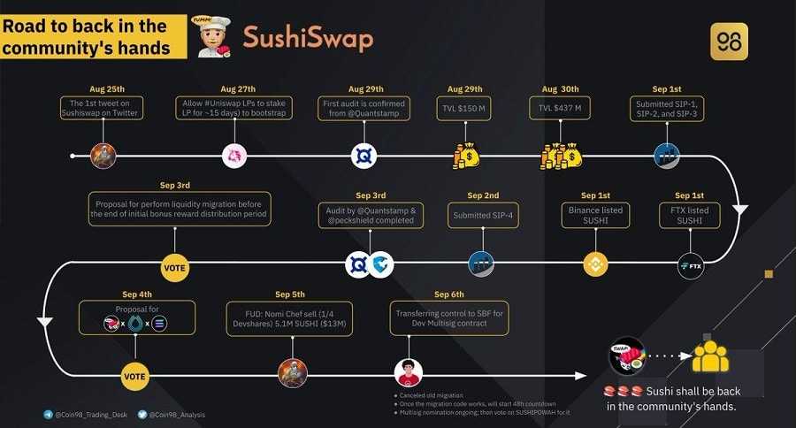 Chef Nomi subsequently stepped away from Sushiswap and handed it to Sam Bankman-Fried. The SushiSwap developers had also considered Andre Cronje as the new de facto leader of the protocol.