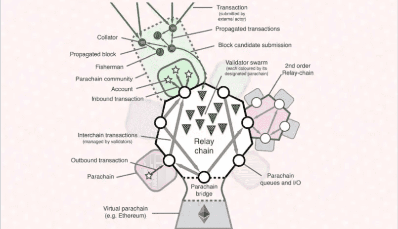 Polkadot serves as a sharded multichain network, facilitating the transfer of messages and value among various blockchains in a trust-free manner. Its goal is to establish a fully decentralized web. The network comprises a relay chain connecting multiple parachains, enabling parallel transaction processing and shared security.
